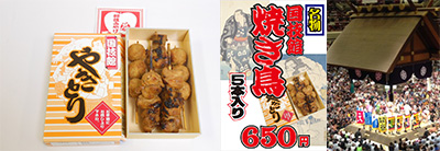 国技館の地下の工場で作られている焼き鳥を特別出張販売いたします!冷めてもおいしいんです! |
