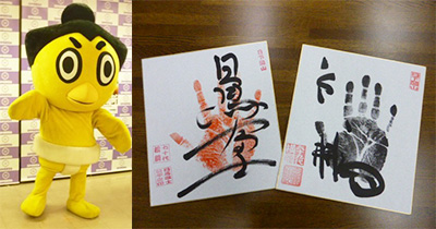 日本相撲協会のマスコットひよの山とじゃんけん対決!勝ったらスモウグッズをプレゼント!運がよければ横綱の手形サインをプレゼント! |
