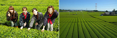また、海鮮グルメ&茶摘み体験の「海鮮グルメ&茶摘みバス」は沼津港での自由昼食タイムと牧之原の茶畑での茶摘み体験ができます! 衣装を着て、ひろい茶畑でお茶の樹やお茶の葉に触れて、茶園の香りもお楽しみください!自分で摘んだ茶葉はお持ち帰りできますので、ご家庭でご利用いただけます(レシピをお渡しいたします)。さらに嬉しい工場見学と煎茶のお土産付です!