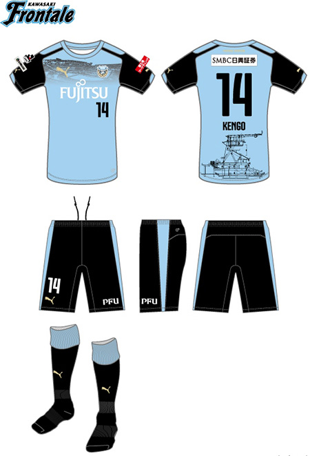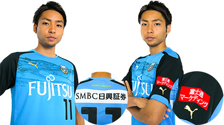![]() 【スポンサーマーク(胸・背中・左袖)】 ![]() 【Jリーグマーク】【ホームタウン(KAWASAKI)マーク】 ※スポンサーマーク表現・デザイン・仕様等は予告なしに変更する場合があります。 |