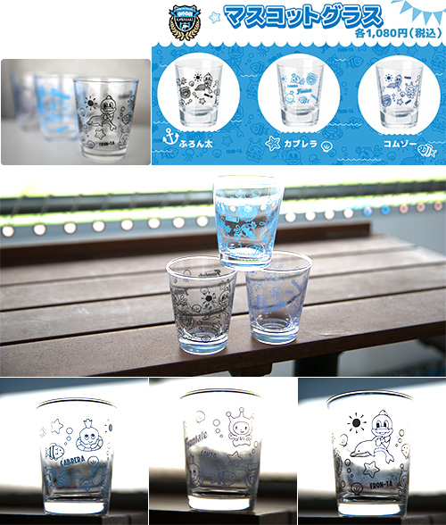 夏らしいグラスがマスコットデザインで発売!!海をテーマに各マスコットがデザインされています。中でも注目は”コムゾー”!久々のグッズ展開です!!