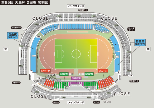 ・メインスタンドで観戦される場合は、SAゾーン指定席のチケットを購入してください。それ以外の場所で観戦される場合は、自由席のチケットを購入してください。