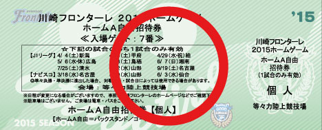 ※「後援会特典チケット」とは、川崎フロンターレ後援会の入会特典としてお渡しする「ホームA自由招待券」(緑色)です。対象試合はこちらの「お知らせ」をご覧ください。 |