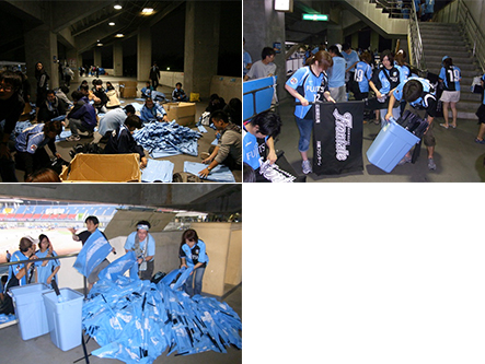 試合終了後に使用したカラーパネル・フラッグを試合終了後に回収・片付け作業を行います。こちらのご協力もよろしくお願い致します。