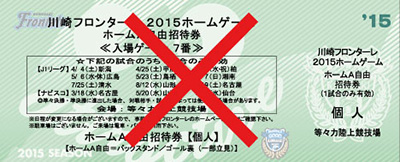 ※「後援会特典チケット」とは、川崎フロンターレ後援会の入会特典としてお渡しする「ホームA自由招待券」(緑色)です。対象試合はこちらの「お知らせ」をご覧ください。 |