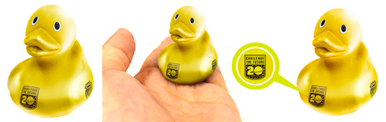 これぞ新体制発表会見の定番グッズ!!今シーズンで4年連続の発売です。初年度は“泳げないアヒル”としてデビューをしましたが、今ではすっかり泳げます。毎シーズンの“クラブキャッチフレーズ”をデザインに取り入れているためコレクションするのに最適!!もちろんお風呂で遊ぶのもオススメ!!なにより2016年はクラブ創立20周年のため、キラキラ輝く“ゴールドカラー”です!