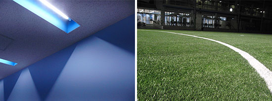 こちらは昨年末より取り換えを実施しましたが、クラブハウス内、フットサルコートの照明設備をLED化しました。照明の明るさはもちろん、以前の水銀灯と比べて水銀を使用していないので環境にも安心です。新しい人工芝や、塗装仕立てのクラブハウス等をよりきれいに映し出してくれます。