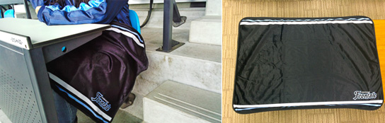 テーブル付ペアシート(上層)にオリジナルブランケットがついてくる企画チケット。寒い日の試合観戦でもブランケットがあれば安心です!!もちろん、ブランケットも1人に1枚ついてきます。