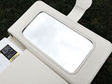 カード入れやミラーがあり、とっても便利なスマートフォンケースです。