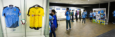 | 内容 | 昨年7月にアジアツアーで来日したボルシア・ドルトムントをはじめ、等々力陸上競技場に来場した海外強豪クラブ選手のサイン入りユニフォームや、12月の皇后杯決勝で対戦したINAC神戸レオネッサとアルビレックス新潟レディースの試合記録など、等々力陸上競技場に関するグッズや写真を展示しています。 また、新メインスタンドの紹介や「等々力陸上競技場整備基金」の受付も行っています。 |