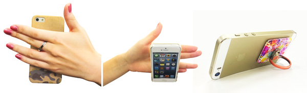 スマートフォンやケースの背面に取り付ける輪。指を通して持つことでうっかりスマートフォンを落として…なんてことを防ぎます。リングは360度回転し、角度調整が可能なで、机の上などにスマートフォンを立てて置くスタンドとしても使える優れもの。リングは折りたためるので、ポケットから出し入れする場合も便利ですよ。
