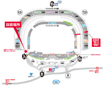 ◇Bゲート付近、7番ゲート付近、10番ゲート付近(I階段下) 11:30〜試合終了後30分 ![]() ※場外に端末の設置はございません。 |