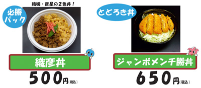 | 物販① | ◆創業昭和33年!川崎生まれ川崎育ちのとんかつ和幸特製弁当![]() ◇選手セレクト弁当:各800円(税込) ◇謹製ひれ勝つサンド(レギュラー):600円 |