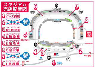 ※「②メインスタンドA階段横」、「⑦バックスタンドJ階段横」の出店はございません。 ◇各売店営業時間