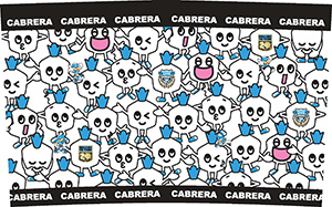 なぞの覆面レスラー「リアルカブレラ」をモチーフにデザイン。こだわりはバックの紐刺繍!