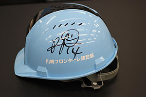 ※サンプル展示品の為、一部欠けや汚れなどがございます。予めご了承くださいませ。 ・川崎フロンターレ建設部「ヘルメット」中村憲剛選手 直筆サイン入り