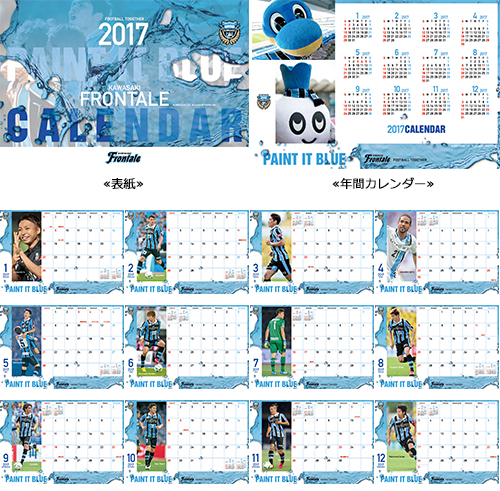2017シーズンカレンダーのデザインコンセプトは「PAINT IT BLUE」。20周年の節目を過ごしたフロンターレ、21年目は初心に返り、今まで以上に「川崎の街」や「スタジアムのスタンド」をフロンターレカラーで染め、川崎フロンターレのホームタウン・ホームスタジアムに相応しい一体感のある雰囲気を作りたいと考えています。