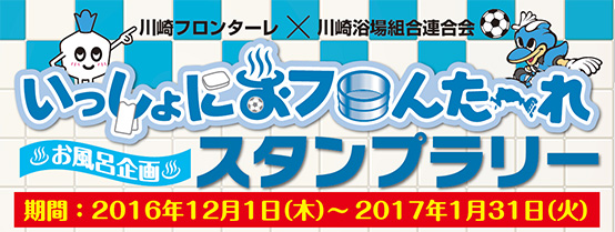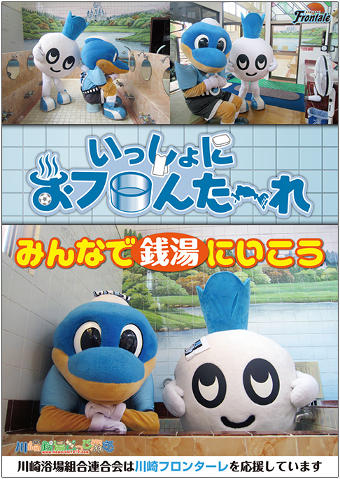 川崎フロンターレは、川崎浴場組合連合会と『川崎フロンターレの「フロ」、川崎浴場組合のお風呂の「フロ」』にちなんで、「いっしょにおフロんた〜れキャンペーン」を実施しますのでお知らせいたします。