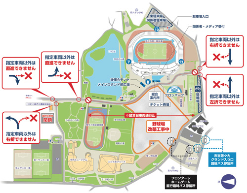 ・2017シーズンも引き続き、野球場工事等に伴い、等々力緑地内の駐車場が大幅に減少しておりますので、ご来場の際は公共交通機関(電車・バス)のご利用をお願いします。
