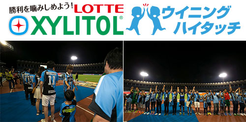 川崎フロンターレは、コラボレーションパートナー株式会社ロッテ様の協賛で、2017明治安田生命J1リーグホームゲーム勝利時に、「共に勝利の喜びを噛みしよう!」の合言葉の下、ロッテ キシリトール ウイニングハイタッチを実施いたします。