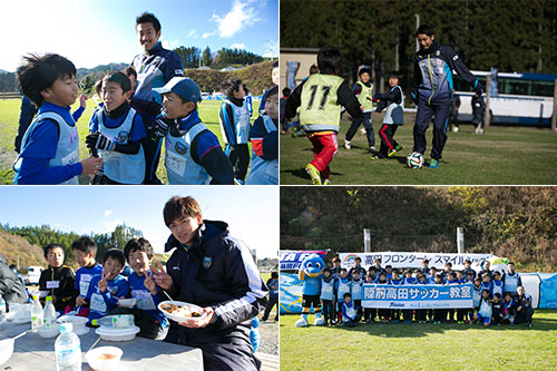川崎フロンターレでは、東日本大震災の被災地の1つである岩手県陸前高田市の公立小学校9校に「川崎フロンターレ算数ドリル(上巻)」を寄付させていただいた縁で陸前高田市との交流を継続し、2015年9月11日には「高田フロンターレスマイルシップ」という友好協定を締結しました。