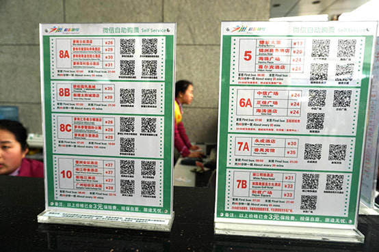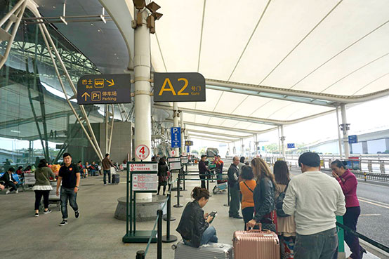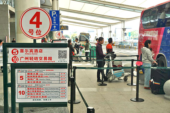 ●「広州白雲国際空港」からエアポートバス、A3Gate外にてチケット購入。A2Gateの4号位にて乗車、5系統に乗車 20元(¥の表記)、45分 ※案内板によっては17元の表示あり。ご注意ください。