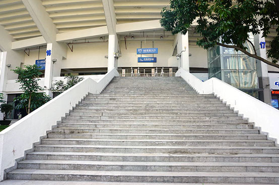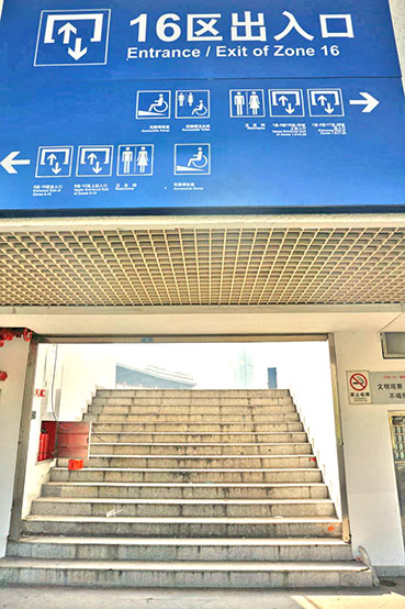 ●「広州白雲国際空港」から地下鉄、「地鉄(Metro)」のサイン下のエスカレーターを-1階(地下1階)に降りて右へ。チケット売場(自動券売機)で「二号線LINE2越秀公園」までの切符を購入し(7元)、三号線で「嘉禾望崗」へ、二号線に乗り換え「越秀公園」下車、D1出口を出て直進、徒歩1分。約40分