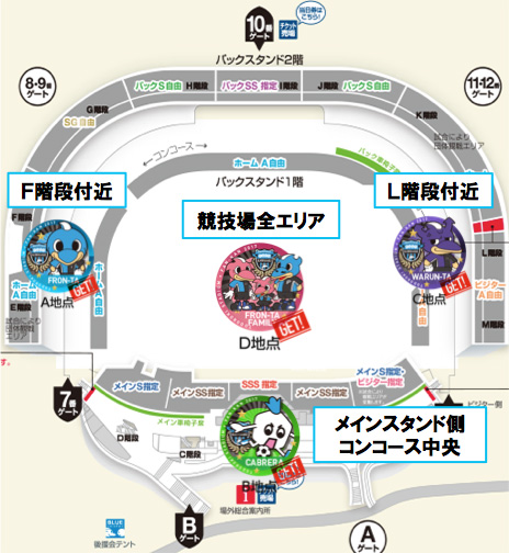| 場所 | 場内メインスタンド、バックスタンド、メインスタンド前広場 |