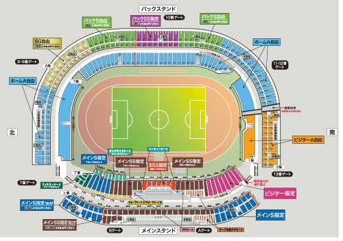 ※2017シーズンからは「DAZN」との放映権契約に伴い、TV中継カメラ等の設置により、使用不可になる席やピッチが見えづらくなる席があります。