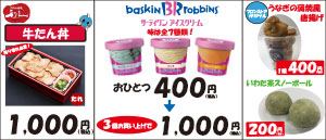弁当、菓子類、アルコール類、ソフトドリンク類を販売!!