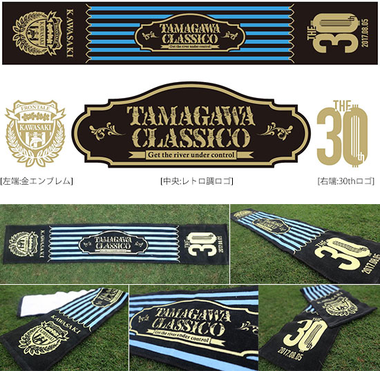記念すべき30回を迎える多摩川クラシコ。タオルマフラーは「クラシック」をテーマに、シンプルなデザインを採用。また、シンプルな中にもメモリアル感のあるロゴやモチーフを盛り込みました。