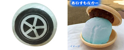 真夏のFサーキット限定!モナカの表面に車のタイヤを刻印したモナカアイスを限定販売します。その名も、「あいすもなカー(car)」!サクサクのモナカとアイスの相性は抜群。ぜひご賞味ください!