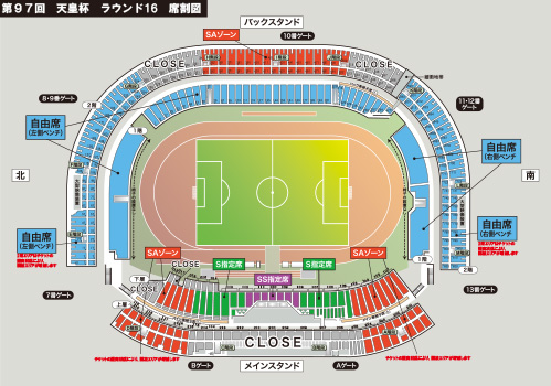 | SS指定席 S指定席 SAゾーン(メインスタンド) |