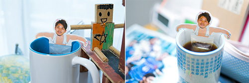 カップに入れてお湯を注ぐと、選手がお風呂に浸かっているように見える紅茶ティーバッグ。お家やオフィスでのブレイクタイムにて、どうぞ癒されてください。