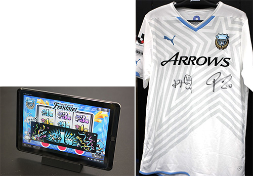 「出張アズーロ・ネロ!!」恒例「フロンターレット」を実施。1回1,000円ハズレなしでフロンターレグッズが必ず当たります!!今回の目玉はなんと「2014 2ndユニフォーム (No.10大島選手、No.14 中村選手直筆サイン入り)」ぜひご参加ください!!