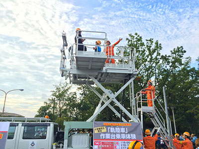 | 企画⑤ | ■道路も線路も両方走る『架線整備車』乗車体験 道路と線路の両方を走れる架線整備車が昨年に引き続き登場します!電線の点検に使われるため、車体上部の作業台を上げ下げできる構造になっている特殊車両です。作業台からの迫力は必見です!