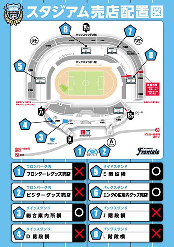 ※Jリーグ開催時に等々力緑地プール前広場にて実施している「川崎フロンパーク」はございません。