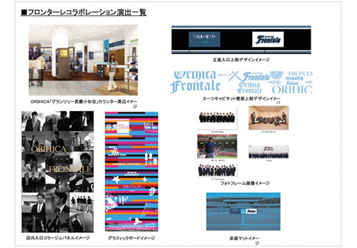| 店舗紹介 | スタイリッシュなORIHICAのイメージにサッカーのスポーティさを、エネルギッシュで攻撃的なチームイメージの川崎フロンターレにスタイリッシュさをプラスした「スポーティ×スタイリッシュ」なデコレーションで今までにないショップ演出をします。 店舗入り口イメージ