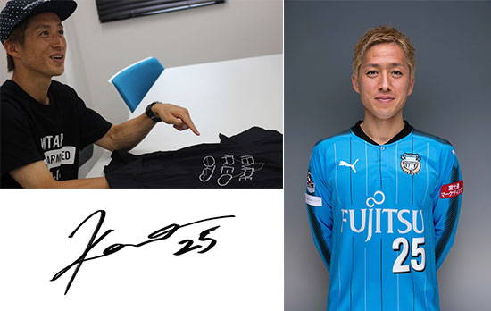 Tシャツのモチーフとしては僕が人生で最も大切にしている"全てのことに感謝の気持ちを忘れない"という言葉をスペイン語で書き、それに加えてサッカーで大切な"心技体"と三角形で表現しました。自分のサッカー人生を表した作りになっています。