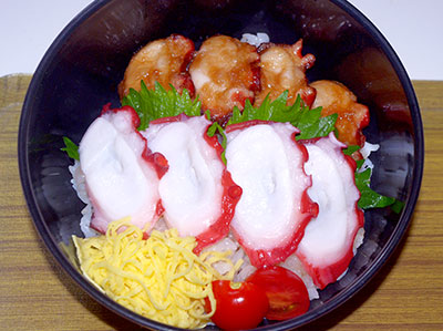 噛み続けるとどんどん旨みが出てくる揚げだこと煮だこの2種類が乗った「たこ丼」が今回初登場します!岩手県の「三陸オリジナル丼グランプリ」で最優秀賞を受賞した、陸前高田名物の一品です!