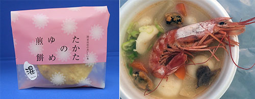 寒い北風に当たっても、この海老ばっとうを食べれば、味噌味の海老汁と陸前高田のブランド米「たかたのゆめ」の米粉で作られたすいとんが入って、とってもホッカホカな気分になれます!