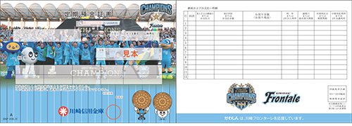 川崎信用金庫ではオフィシャルスポンサーとして、地域の皆さまと共に優勝の喜びを分かち合い、川崎フロンターレを祝福することを目的として期間限定で優勝記念「定期預金証書」の取扱いを開始いたします。