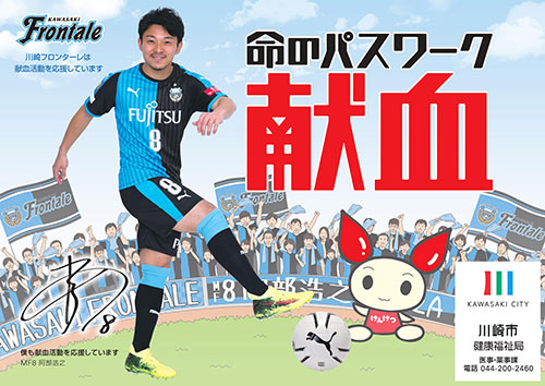 この度、川崎市健康福祉局が製作する川崎市内の「献血」推進ポスターに、当クラブの阿部浩之選手が採用されましたので、お知らせいたします。