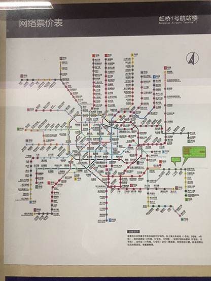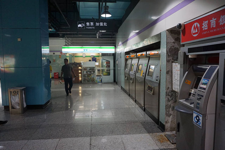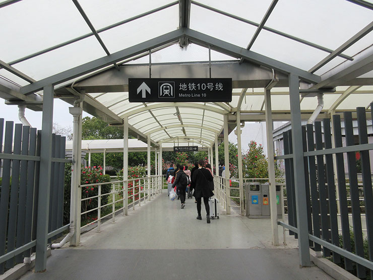 到着ロビーより案内表示をもとに連絡通路を経由し、券売機にて切符を購入。10号線に乗車し、「交通大学」にて11号線に乗り換え