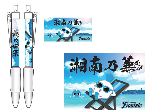 | 実施内容 | オフィシャルグッズショップ「アズーロ・ネロ」スタッフがたくさんのフロンターレグッズを持って直接、販売に伺うグッズ出張販売を実施! ◆新商品 ◇湘南乃蕪ボールペン 湘南の風を感じに湘南を満喫しているカブレラをデザイン。