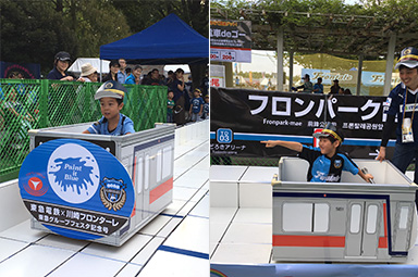 | 企画9 | ◆ピッタリを目指せ!「リアル電車deゴー!!」 フロンターレオリジナル電車アトラクションの「リアル電車deゴー」が今年も登場します!運転手が乗った電車を押して、決められた場所にピッタリ停まれば豪華賞品をプレゼント!今年の豪華賞品は「ザ・ロイヤルエクスプレス」のプラレールや「2018 東急電車まつりin長津田」ご招待券をご用意!ぜひ、みなさんのチャレンジをお待ちしております!