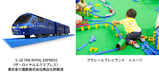 | 企画10 | ◆プラレールプレイランド&プラレールジオラマ 東急電鉄と伊豆急行が運行する豪華な観光列車の「ザ・ロイヤルエクスプレス」のプラレールが発売されることを記念してプラレールプレイランドが登場。ザ・ロイヤルエクスプレスのプラレールの販売も行います!! ◇プレイエリア