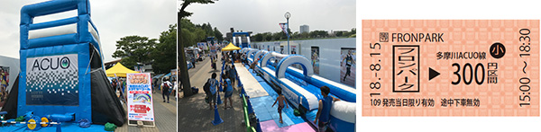| 企画21 | ◆スライダー特急券発行中「多摩川ACUOスライダープール」 夏季ウォ―タースライダー3連戦第2弾は「東急グループフェスタ」開催を記念して「スライダー特急券」を発行いたします。この日はウォ―タースライダーの整理券がまるで電車の切符に!ここでしかもらえないフロンターレオリジナルの特急券を持って夏の暑さを吹き飛ばす爽快特急スライダーに乗り込もう!