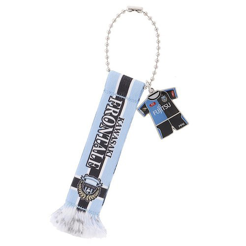 川崎フロンターレのマフラーをモチーフにしたキーホルダーにユニフォームのチャームがキュート◎ ボールチェーンは取り外ししやすく、かばんや鍵に付けやすいのもポイント。