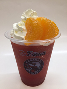 この日はフロンパークや場内の飲食売店も赤一色。「真っ赤」「ピリ辛」など、噂の献血SHOWに絡めたこの日だけの限定メニューを販売します!!メインスタンドでは「ブラッドオレンジ対決」が勃発!